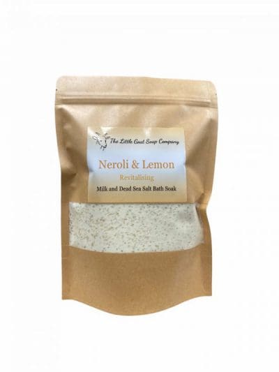 A Neroli & Lemon Bath Soak is a luxurious blend of bath salts, including Dead Sea Salt, infused with the citrusy scents of Neroli and Lemon.