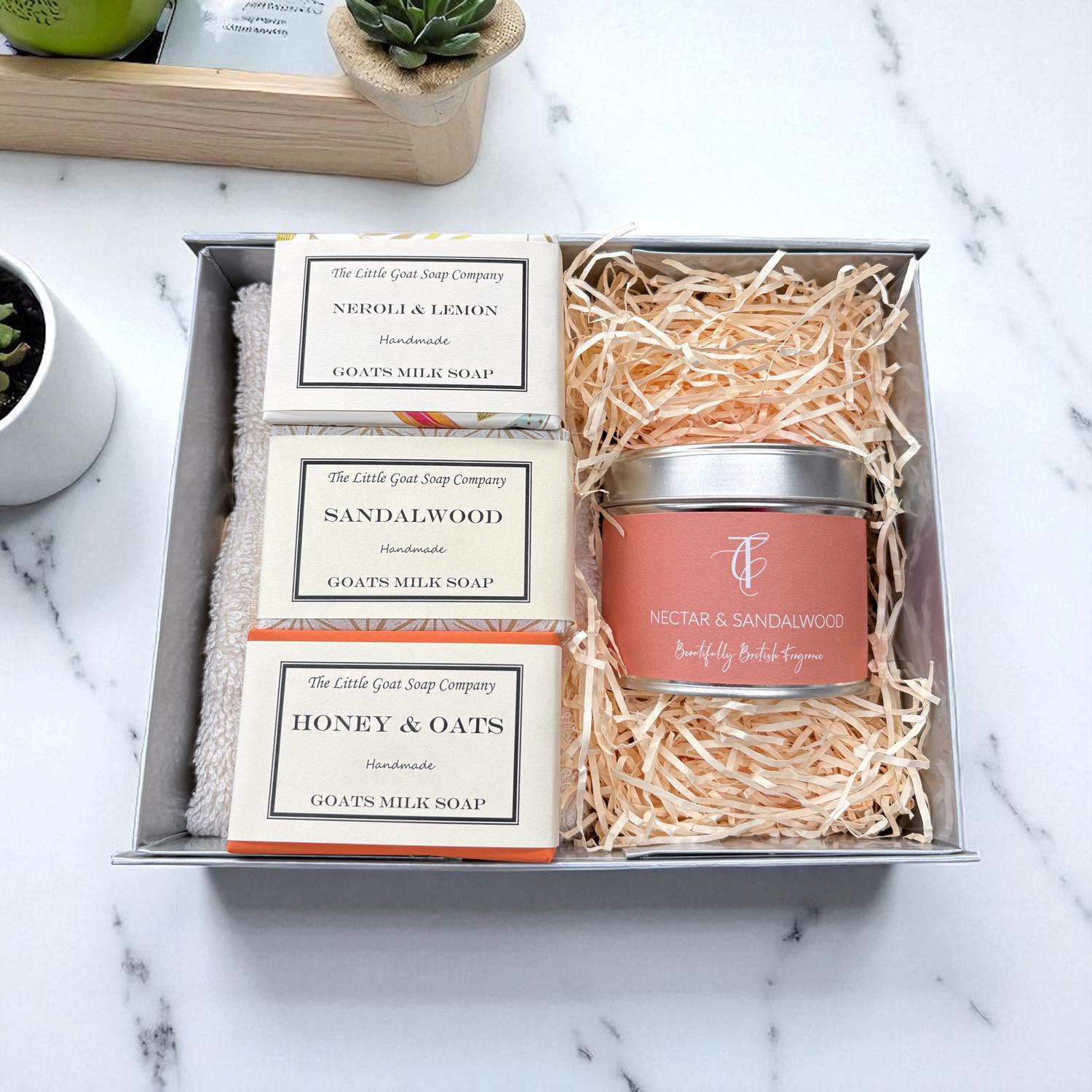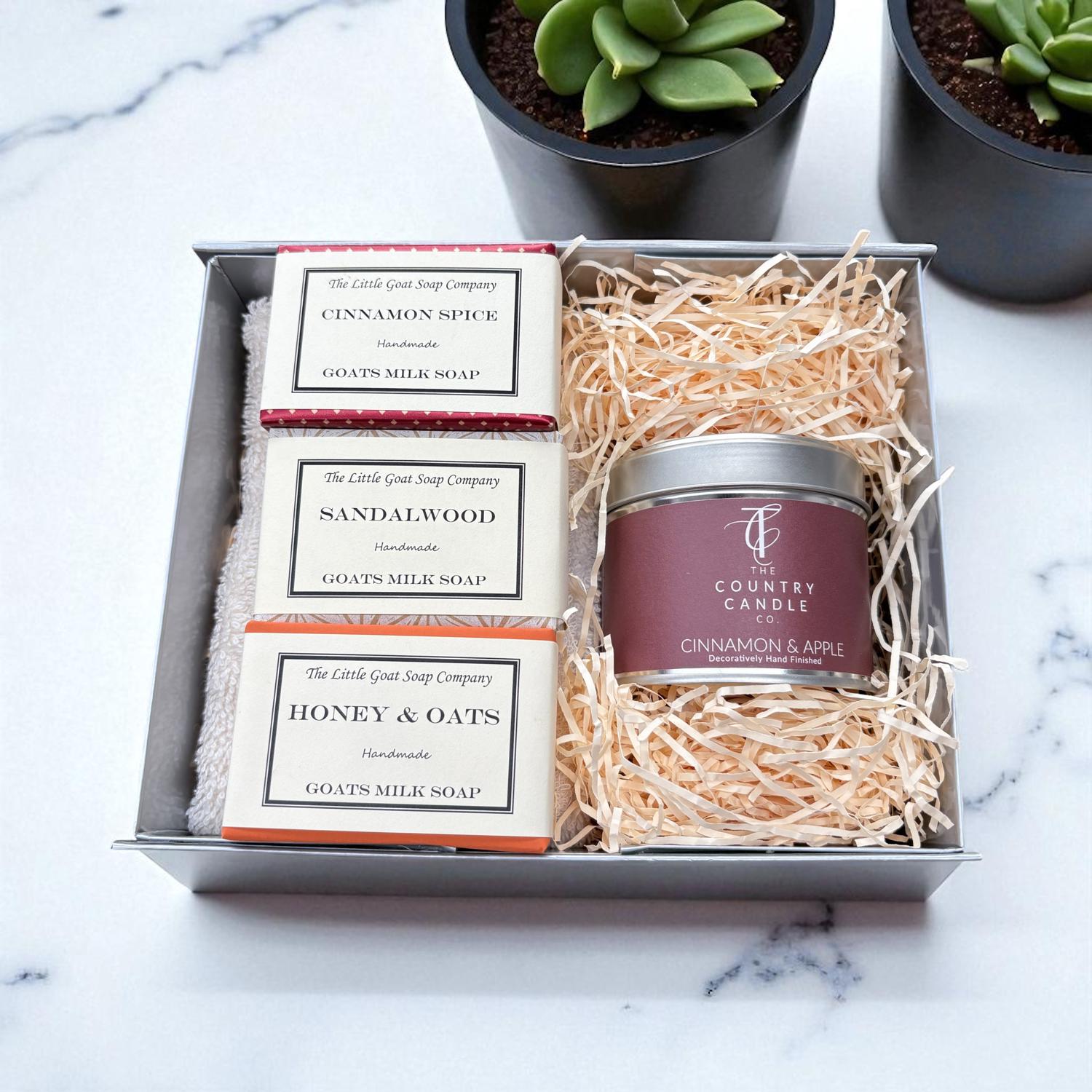 What could be better than taking a moment to yourself to relax and enjoy some downtime? With our Take a Moment Gift, you can choose any three of our Goat Milk Soaps, and get a scented candle of your choice from The Country Candle Company. It's the perfect way to spoil yourself, or to give someone special a little bit of luxury. We've included an Egyptian cotton facecloth and Ramie soap bag to help you get the most out of your gift!